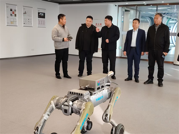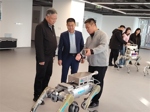 在合肥宇翼科技有限公司,创始人及总裁杨永涛对田秋华会长及各地冀商会长一行的到来表示热烈欢迎,并全程陪同参观企业展厅。展厅内,宇翼科技多款智能机器人集中亮相,从安防巡检四足机器人到文旅互动机器狗,从导览人形机器人到工业轮足机器人,全方位展示了企业在智能装备领域的技术成果与场景应用。走访团现场观看了机器人表演,灵活的避障动作、流畅的人机互动、精准的功能演示,赢得一行人连连称赞,直观感受到科技赋能产业的强劲动能。