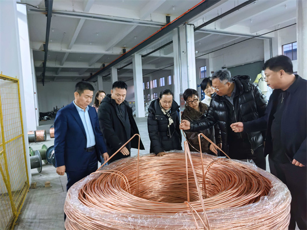 座谈结束后,走访团一行参观了国威线缆生产车间。车间内,挤塑机、绞线机等设备有序运转,智能化生产线高效作业,从导电线芯绞合到绝缘层防护、成品检测的全流程清晰呈现,走访团实地察看了防火电缆等核心产品的生产工艺,对企业规范化生产管理、智能化制造水平及产品品质管控给予高度评价。